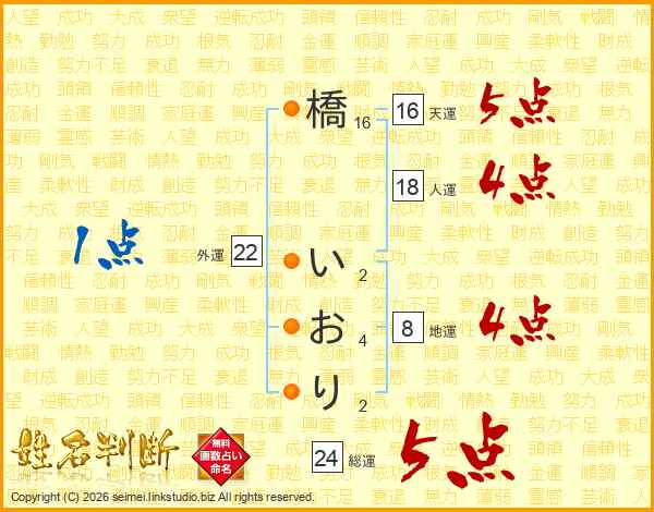 橋いおりさんの総運は24画の5点!