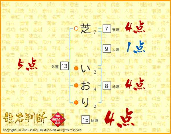 芝いおりさんの総運は15画の4点!