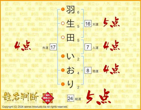 羽生田いおりさんの総運は24画の5点!