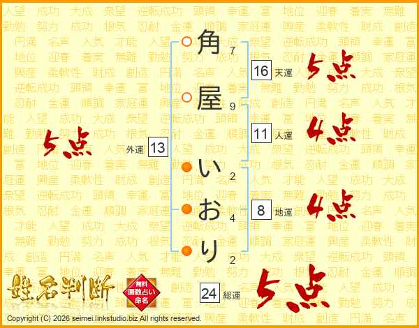 角屋いおりさんの総運は24画の5点!