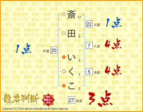 斎(17画)田(5画) い(2画)く(1画)こ(2画)
