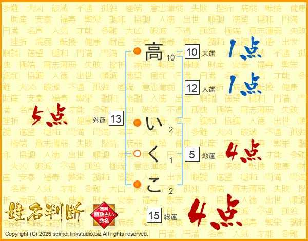 高いくこさんの総運は15画の4点!