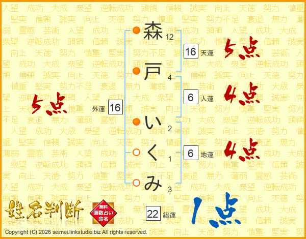 森(12画)戸(4画) い(2画)く(1画)み(3画)