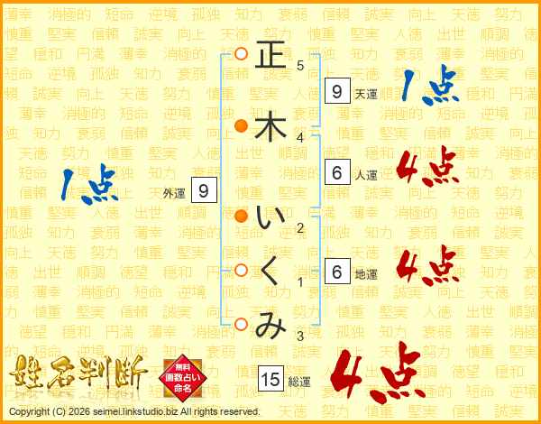 正木いくみさんの総運は15画の4点!