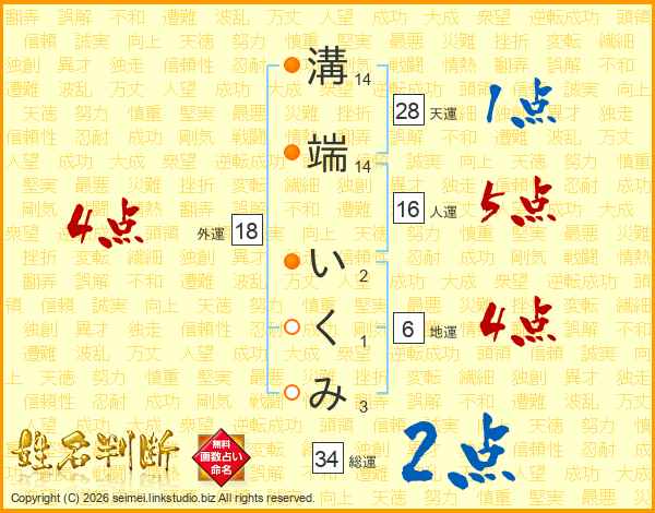 溝端いくみさんの外運は18画の4点!