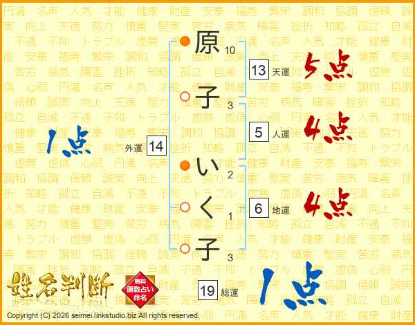 原子いく子さんの総運は19画の1点!