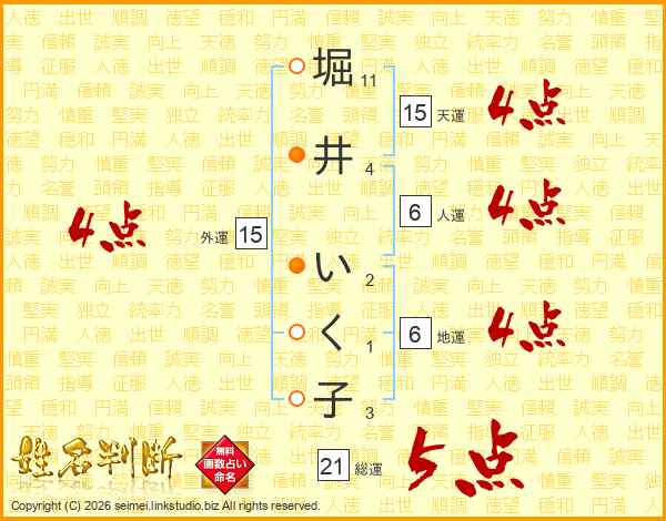 堀井いく子さんの総運は21画の5点!