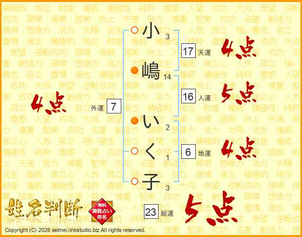小嶋いく子さんの総運は23画の5点!