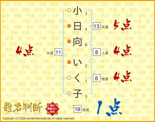 小日向いく子さんの外運は11画の4点!