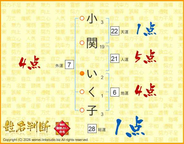 小関いく子さんの総運は28画の1点!