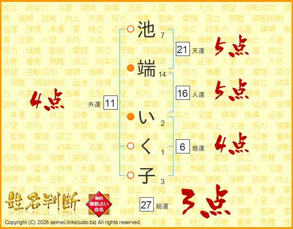 池(7画)端(14画) い(2画)く(1画)子(3画)