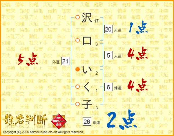 沢口いく子さんの総運は26画の2点!