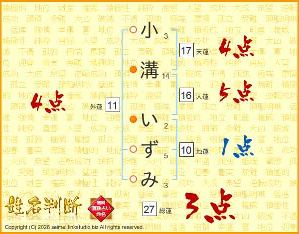小溝いずみさんの天運は17画の4点!