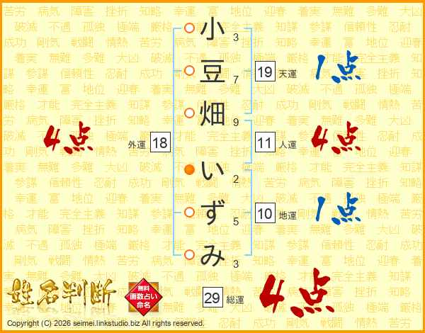 小豆畑いずみさんの総運は29画の4点!
