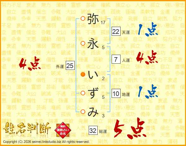 弥(17画)永(5画) い(2画)ず(5画)み(3画)