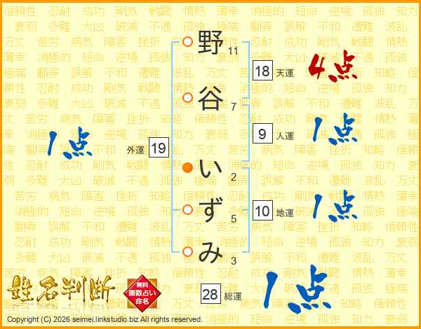 野谷いずみさんの天運は18画の4点!