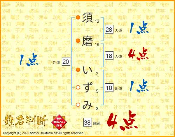 須(12画)磨(16画) い(2画)ず(5画)み(3画)