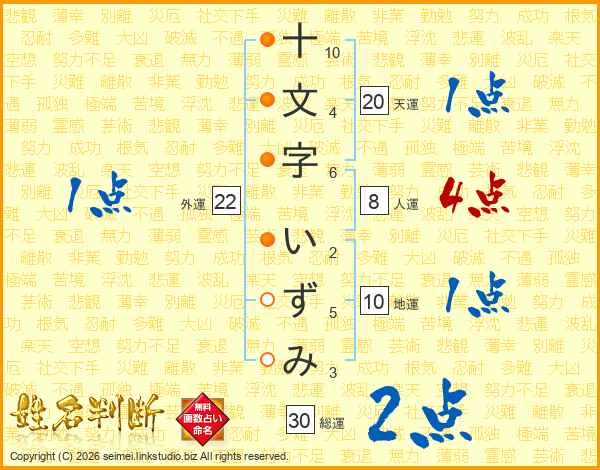 十文字いずみさんの天運は20画の1点!