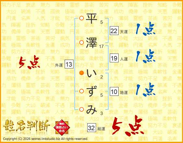 平澤いずみさんの総運は32画の5点!