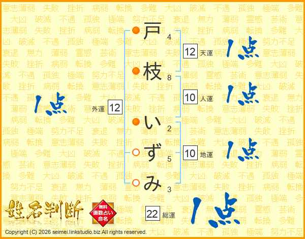 戸(4画)枝(8画) い(2画)ず(5画)み(3画)