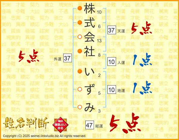 株(10画)式(6画)会(13画)社(8画) い(2画)ず(5画)み(3画)
