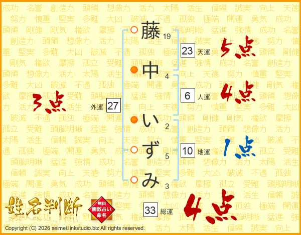 藤中いずみさんの総運は33画の4点!