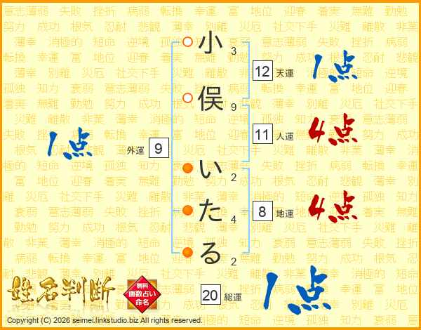 小俣いたるさんの人運は11画の4点!