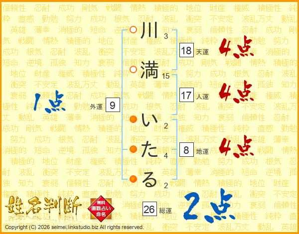 川満いたるさんの総運は26画の2点!