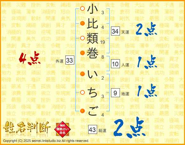 小(3画)比(4画)類(19画)巻(8画) い(2画)ち(3画)ご(4画)
