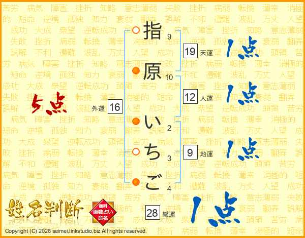 指原いちごさんの総運は28画の1点!