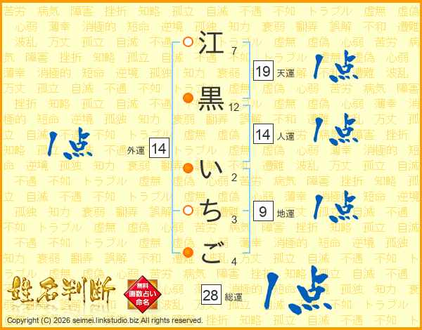 江黒いちごさんの人運は14画の1点!