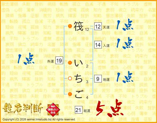筏いちごさんの総運は21画の5点!