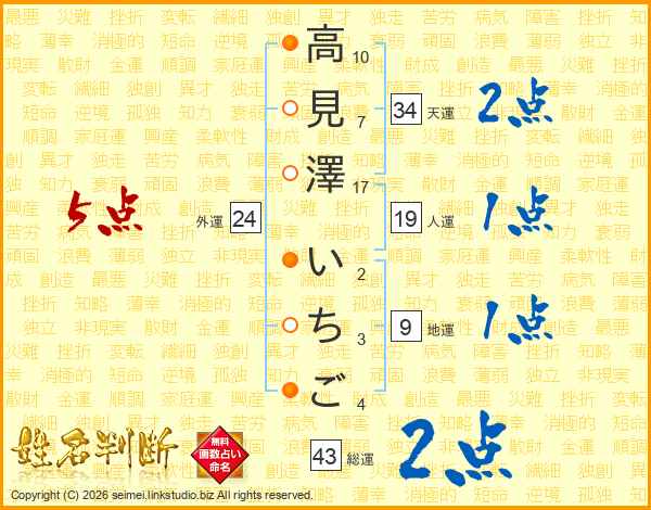 高見澤いちごさんの総運は43画の2点!