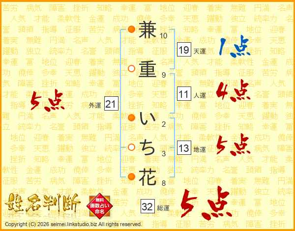 兼重いち花さんの総運は32画の5点!