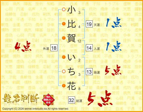 小比賀いち花さんの外運は18画の4点!