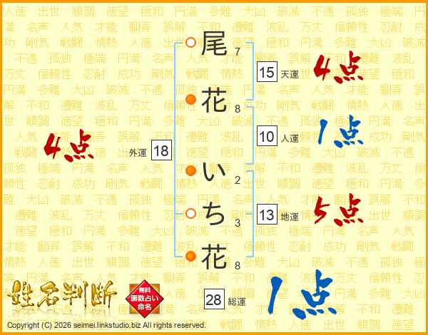 尾花いち花さんの外運は18画の4点!