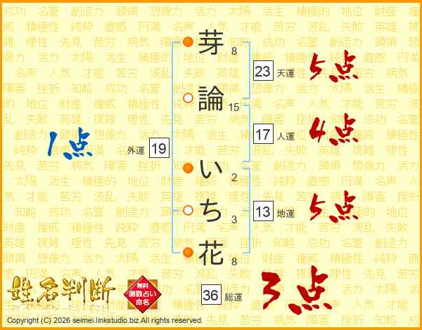 芽論いち花さんの総運は36画の3点!
