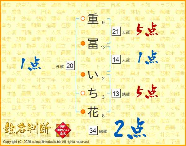 重冨いち花さんの総運は34画の2点!