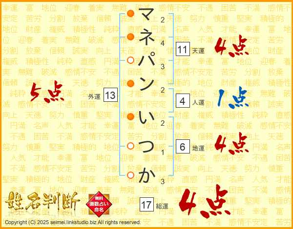 マネパンいつかさんの総運は17画の4点!