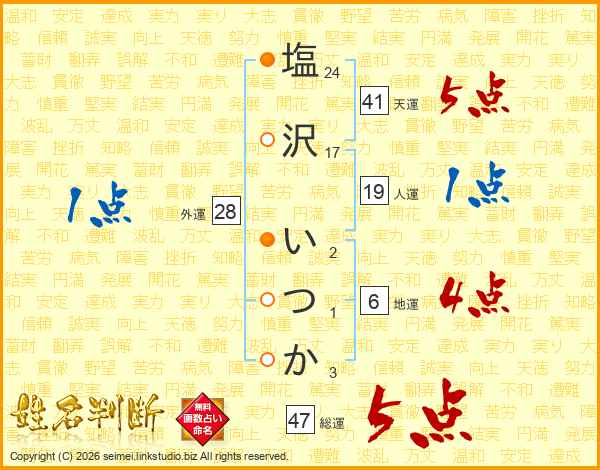 塩沢いつかさんの総運は47画の5点!