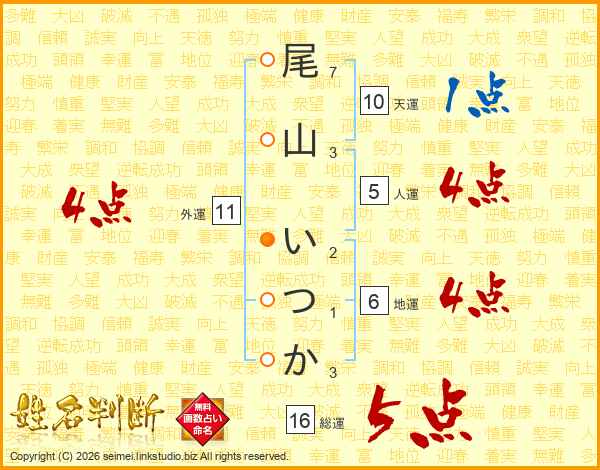 尾山いつかさんの総運は16画の5点!