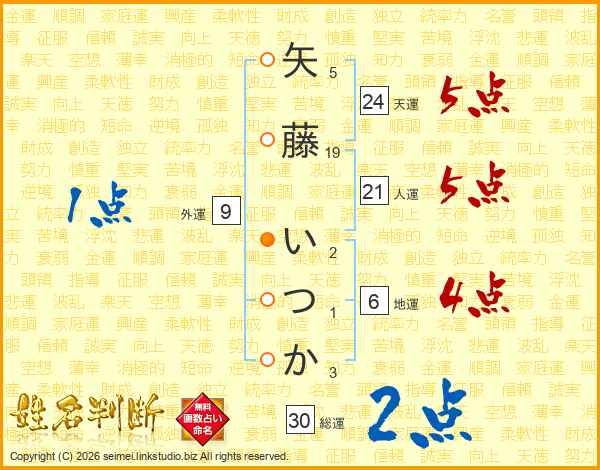 矢藤いつかさんの総運は30画の2点!