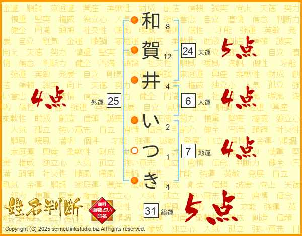 和(8画)賀(12画)井(4画) い(2画)つ(1画)き(4画)