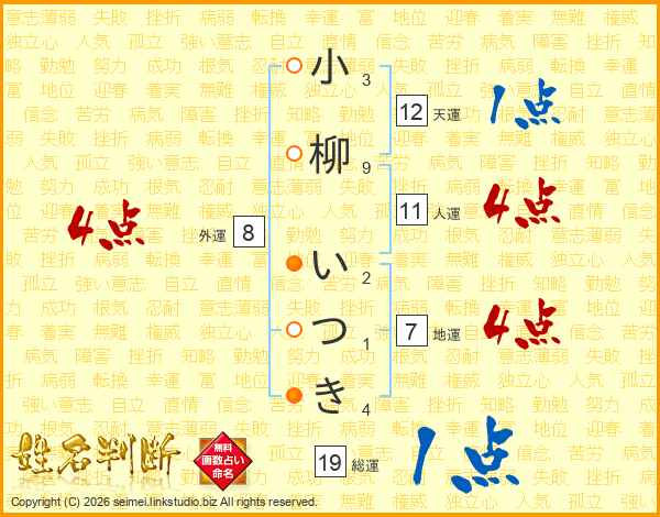 小柳いつきさんの地運は7画の4点!