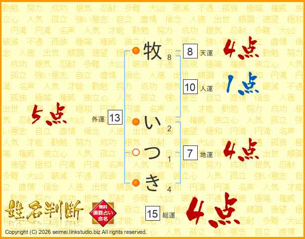 牧いつきさんの総運は15画の4点!