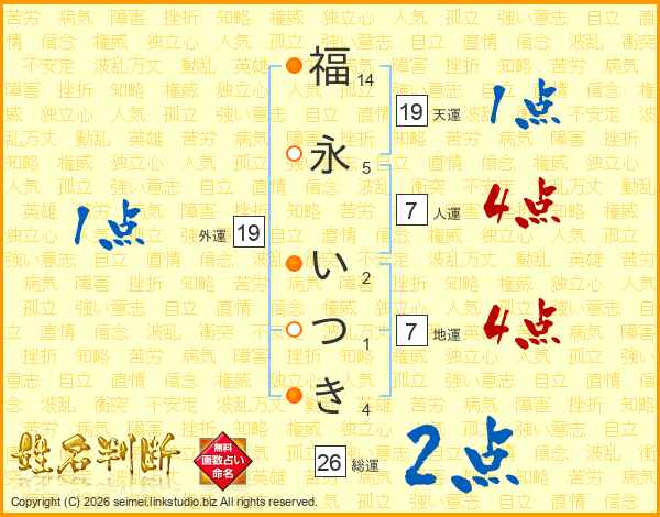 福永いつきさんの総運は26画の2点!