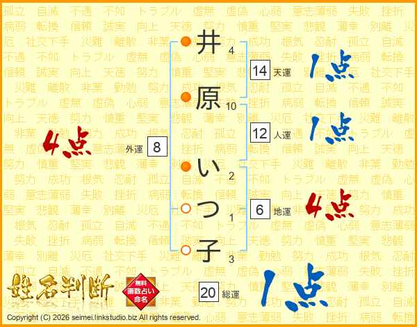 井原いつ子さんの総運は20画の1点!