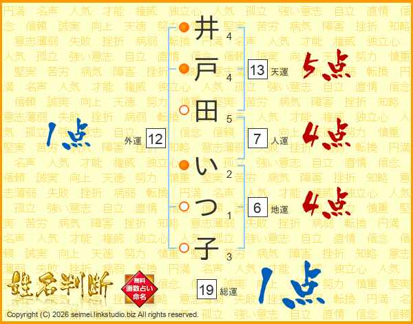 井戸田いつ子さんの総運は19画の1点!