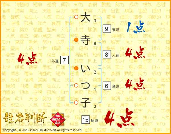 大寺いつ子さんの総運は15画の4点!