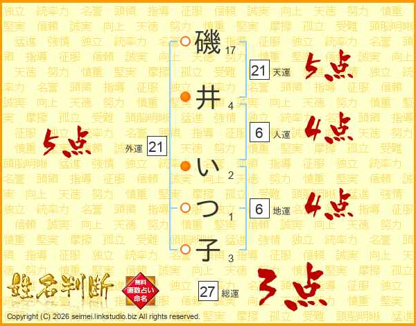 磯井いつ子さんの外運は21画の5点!